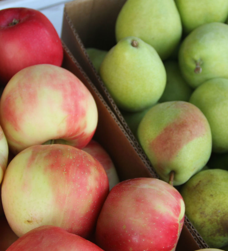 Order a custom packed, half crate (14pc) of crisp Washington apples and fresh Northwest pears. Up to one apple and one pear variety of your choice are sorted, polished, and shipped in our spectacular, reclaimed wooden fruit crate.